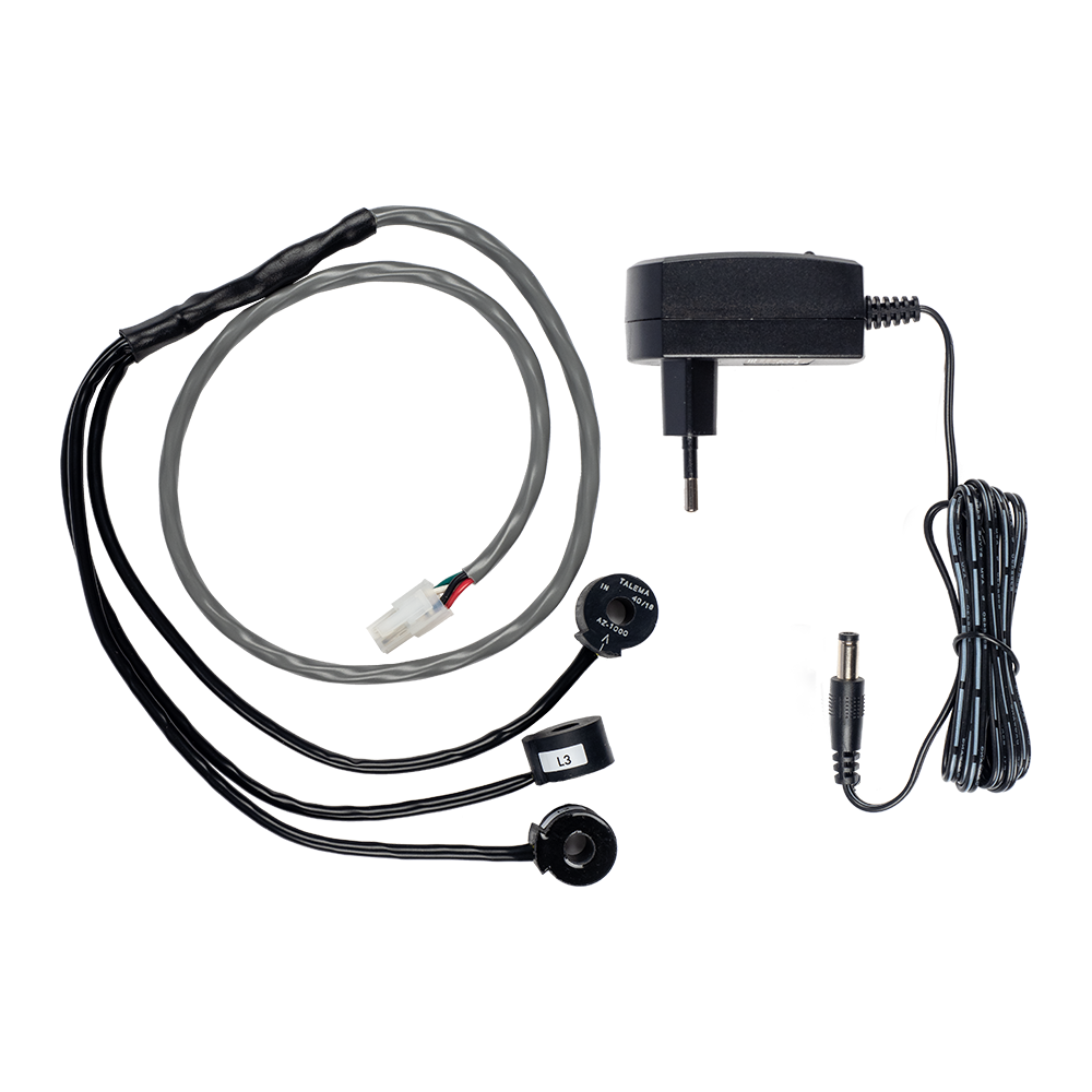 Jeu de 3 transformateurs de courant, maximum triphasé 40A si pas de compteur kWh intelligent avec port P1. VD max. 10 mm, adaptateur électrique 12V.